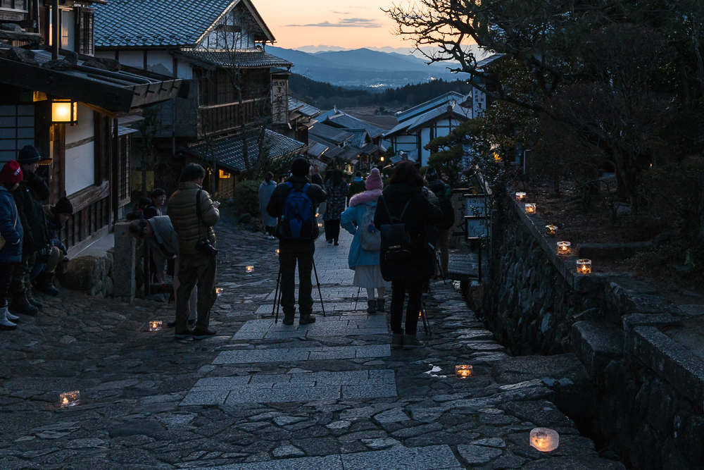 旧中山道の馬籠宿下入口から馬籠陣場上展望台までがアイスキャンドルでライトアップされます。